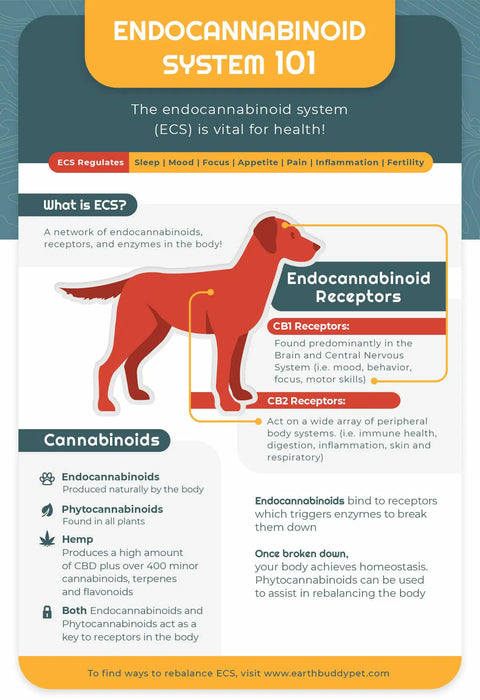 The ECS’s primary goal is to promote homeostasis or balance. This system produces the same compounds that are found in the Organic Hemp Extract used in Earth Buddy. By introducing phytocannabinoids or plant-based cannabinoids from Organic Hemp we can engage the Endocannabinoid System and promote calming, brain health, joint health, immune support and many other benefits the body requires for balanced health. As cats and dogs age the endocannabinoid system can become deficient, which is why so many pet owners see a profound response in their furry friends when they supplement full spectrum hemp extracts that contain cannabinoids.